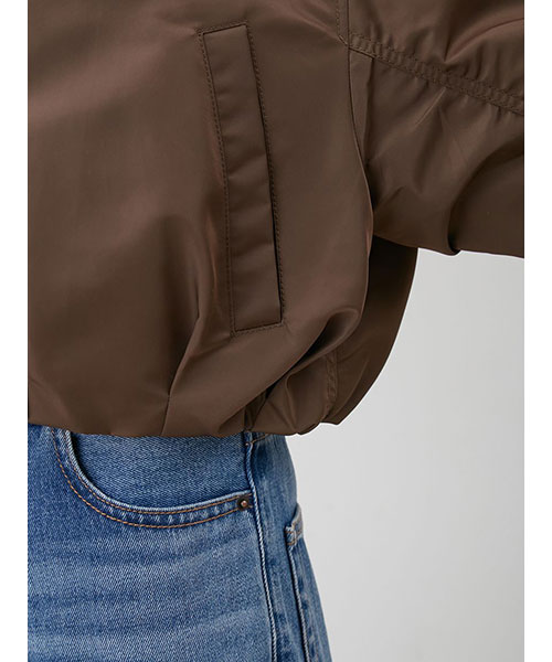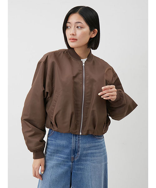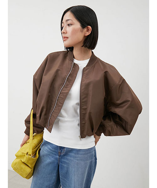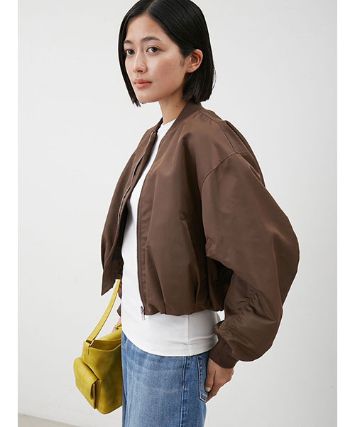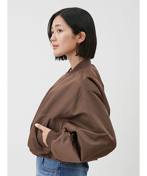 ベーシックなボンバージャケット・MA-1を、ショート丈&バブルシルエットで今年らしくアレンジ。デザイン性が高い、モードな一枚に仕上げました。