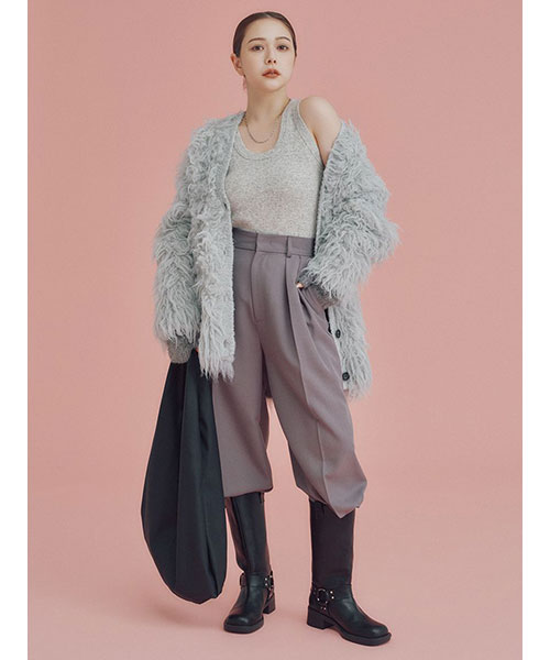 カール感が可愛く、ラグジュアリー感もあるシャギーニットカーディガン。