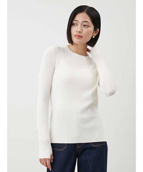 クルーネックリブニットプルオーバー