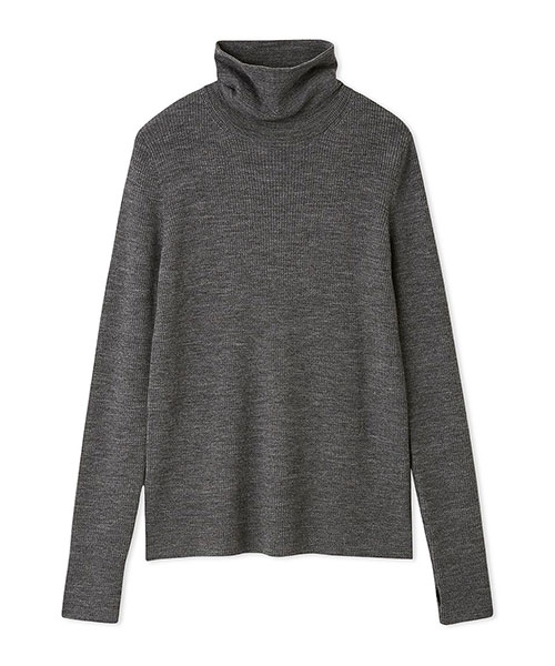 毎年大人気、シンプルで綺麗な形のタートルネックリブニットです。