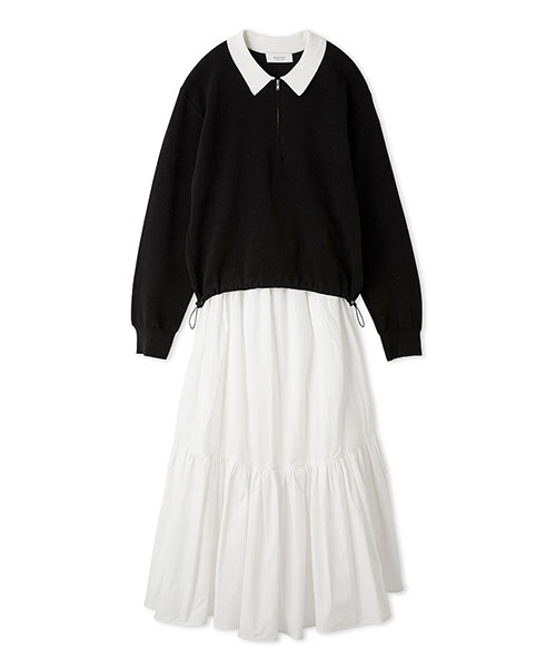 ジップアップニット×スカートセット