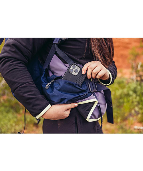 ●パッド入りのラップアラウンドヒップベルトには大きなジッパー付きポケット