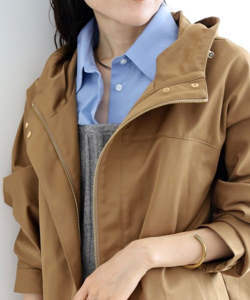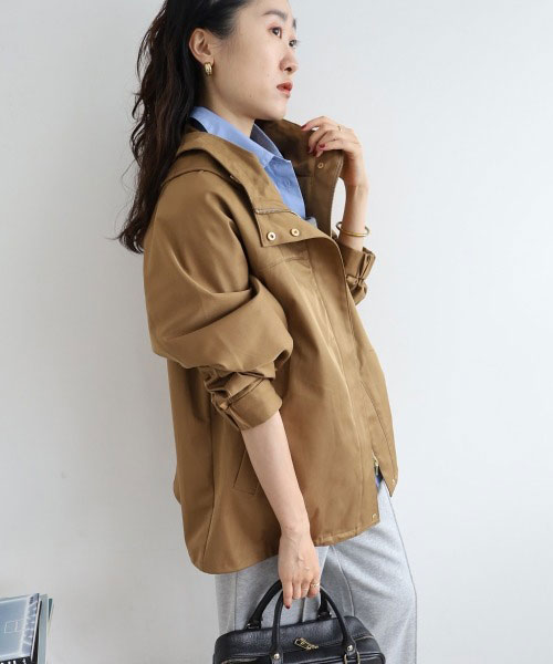 上品で光沢感のある素材で大人カジュアルが仕上がる一枚。