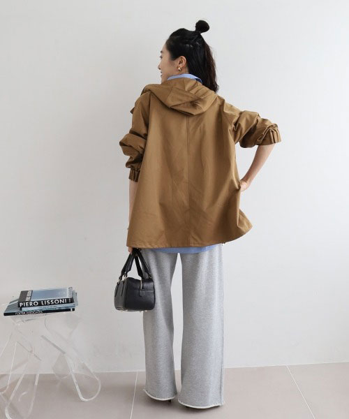 ゆったりとしたサイズ感。裾のドローコードでシルエットをアレンジしていただけます。