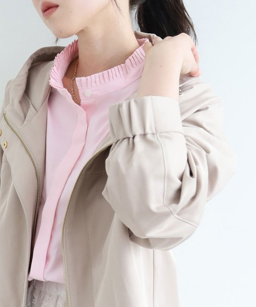 袖下部分をゴムで絞っており、袖をたくし上げた着こなしも簡単に決まるデザインです。