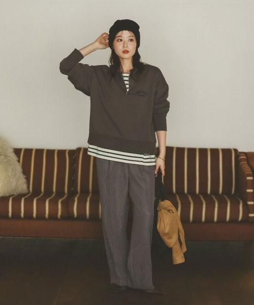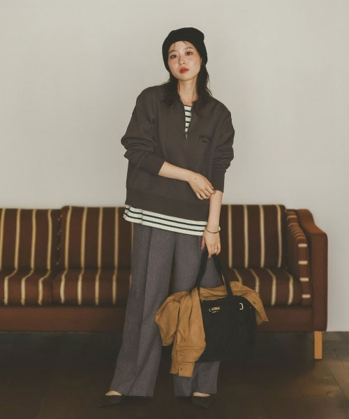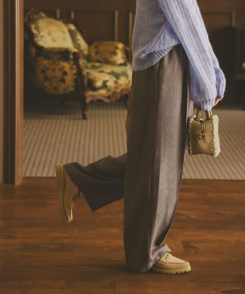 センタープレス入りで、きれいめにも使いやすいデザインでオンオフ問わずお使いいただけます。