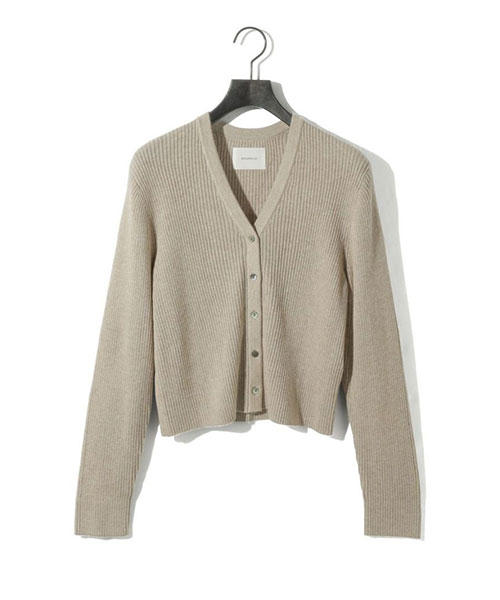 Vネック浅めでプルオーバーとしても使っていただけます。すっきりと見えるリブを使っており程よいサイズ感に仕上げたショートカーディガンです。