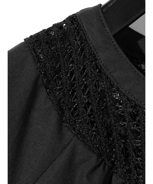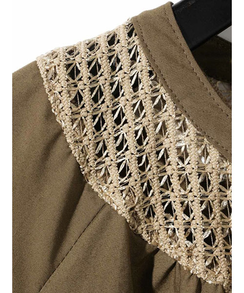 首元に施したラッセルレースがアクセントになっています。組紐風の特殊な織り方でナチュラルなデザイン仕上げ。