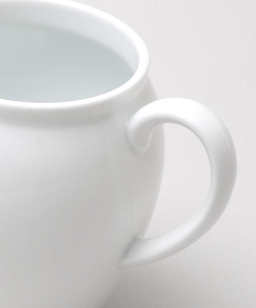 白く艶やかな磁器製。原料には、熊本県の天草地方で採れた国産陶石を使用しています。不純物を可能な限り取りのぞいた地肌は、どこまでも白く滑らかです。