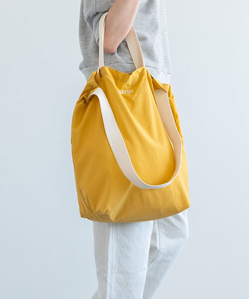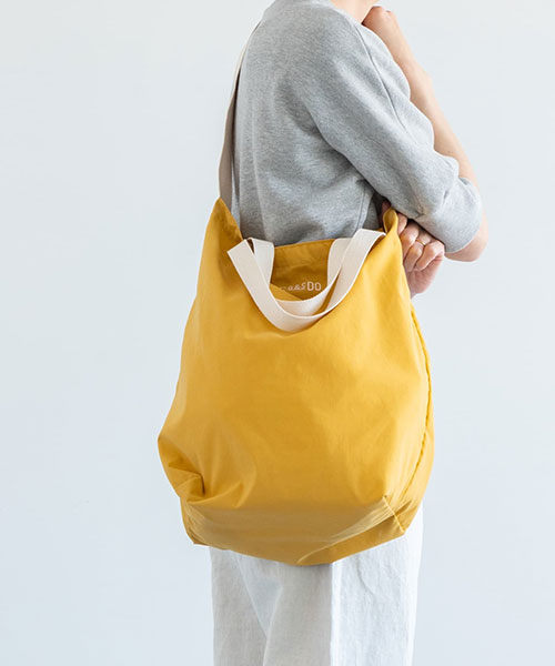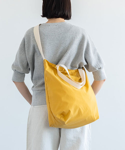 ショルダーは、肩から下げて使いやすい長さ。ナチュラルな雰囲気の綿の持ち手とショルダーが、ナイロンのカジュアルさを中和しています。ナイロン素材の中でも薄く軽い生地のため、小さく折り畳むことができ、サブバッグがわりに持ち歩くのもよさそうです。