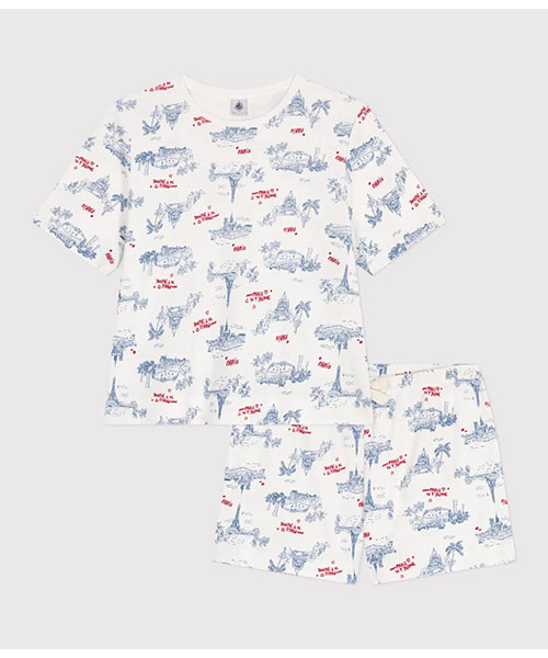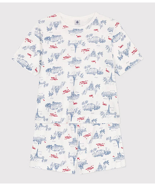 パリを象徴する建造物プリントをあしらったアイコニックな半袖パジャマです。環境にやさしく、第二の肌と呼ばれるほどやわらかな1x1リブ編みコットン素材を使用し、ナチュラルな着心地を実現。お家でのリラックスタイムから就寝時までを快適に過ごせるおすすめアイテムです。