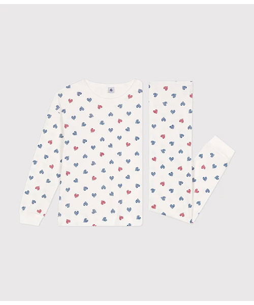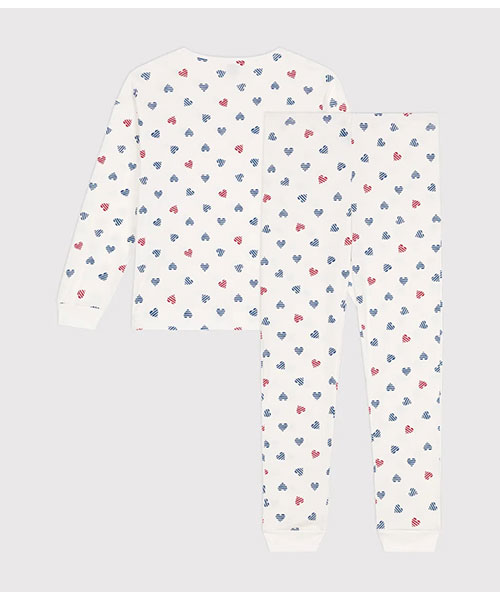 ボーダーのハート柄がとってもキュートな長袖パジャマです。環境にやさしく、第二の肌と呼ばれるやわらかな手触りの1×1リブ編み素材を使用し快適な着心地を実現しています。袖口と裾にあしらわれたリブが心地良いフィット感を提供。おうちでのリラックスタイムから就寝時までを快適に過ごせる、おすすめのアイテムです。