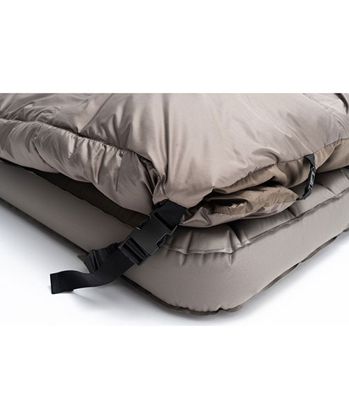掛け布団/50Dポリエステル(表地)、150Dポリエステル(裏地)、中綿/ダウン95%、フェザー5%(本体)、ポリエステル100%(サイドフラップ)、マット/75Dポリエステル