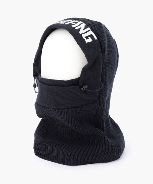冷え込みの激しい、冬場の早朝からのラウンドを想定して作られた、ニット素材のバラクラバです。