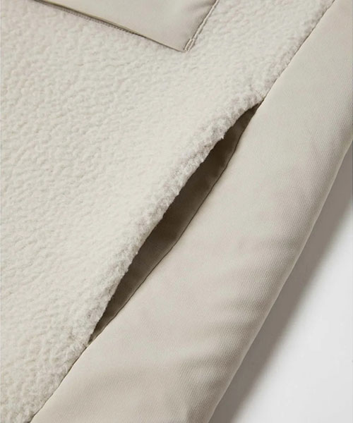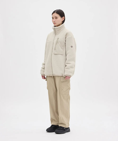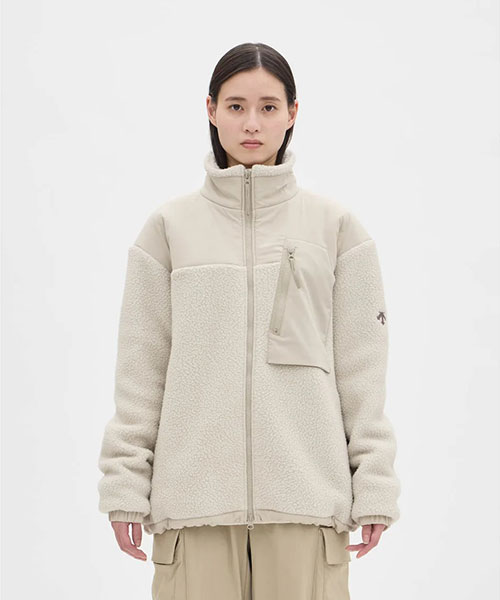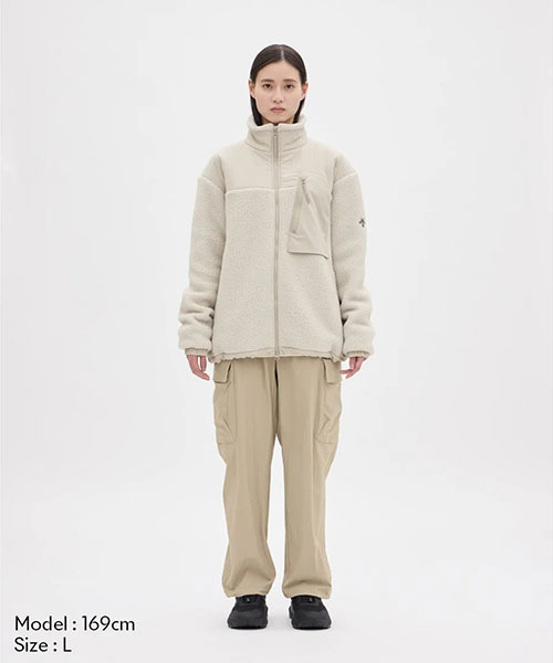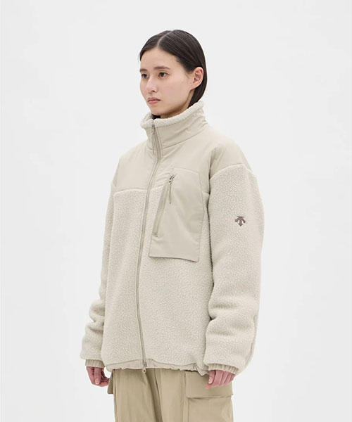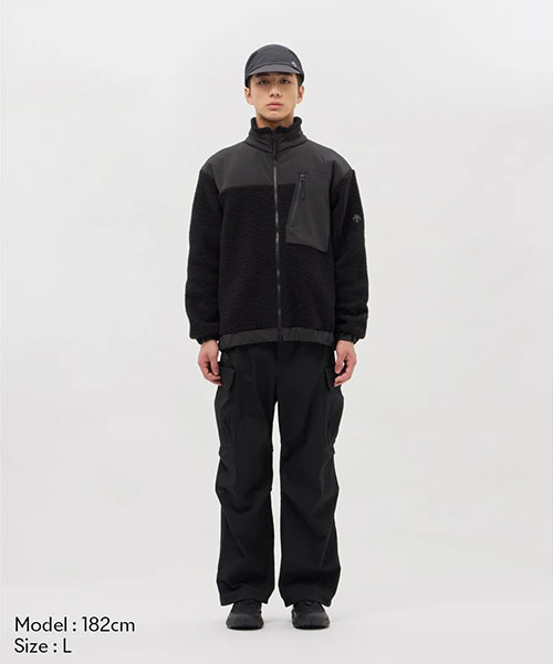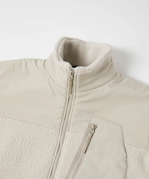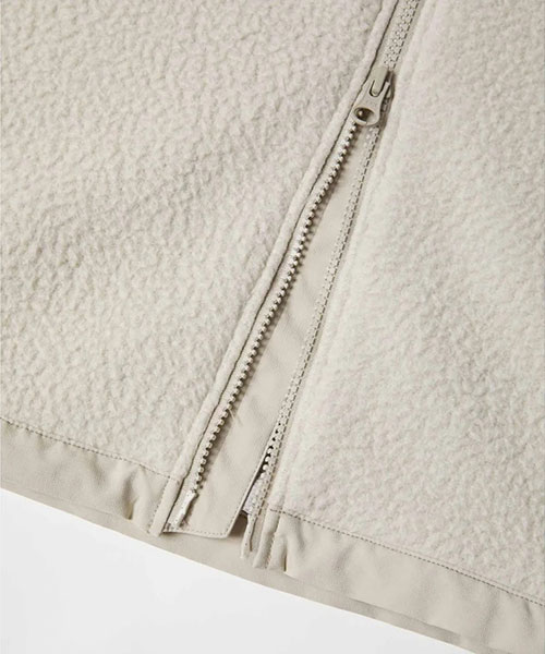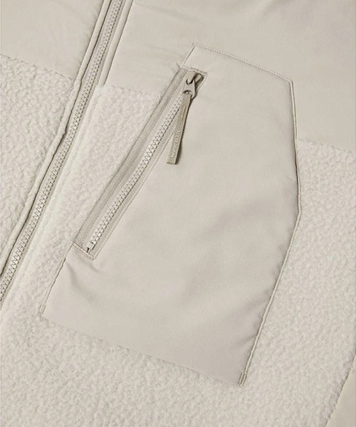 負荷の掛かる場所に部分的に布帛を配置する事で耐久性を向上。春先や秋口のアウターとしても、厳冬期のミドラーとしても、アウトドアで活用出来る機能を備えつつ、普段使いにも適した1着です。