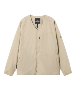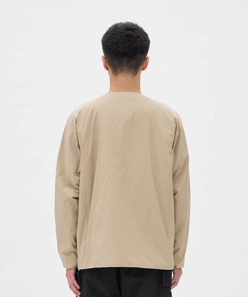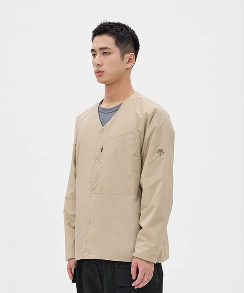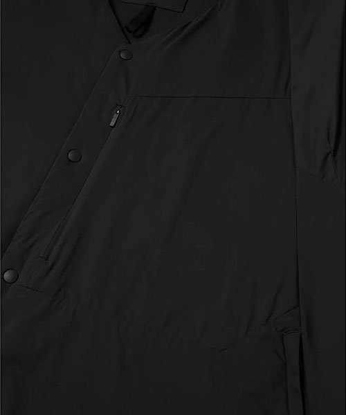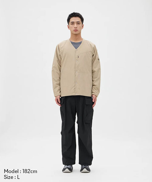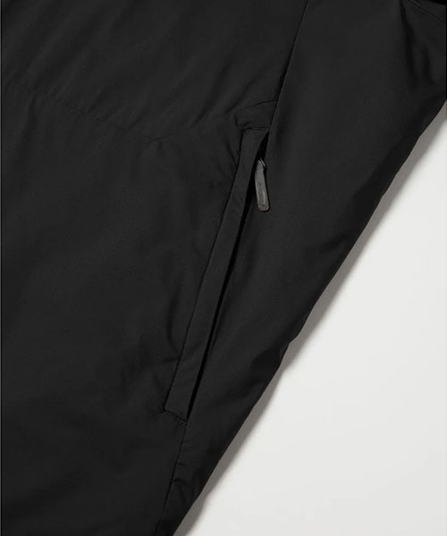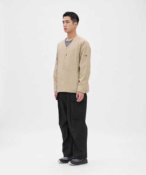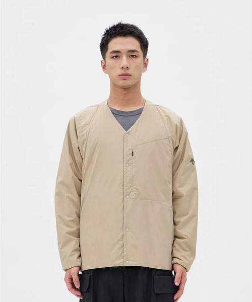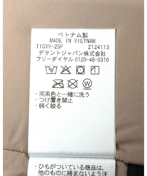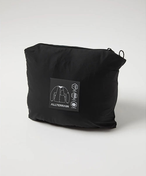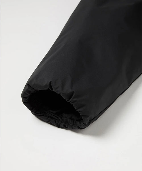中わたには複数の特殊な3Dスパイラル原糸構造がそれぞれ複雑に絡み合うことで、かさ高性による温かさ、ストレッチ性、通気性をもつ3DeFXを内蔵。はっ水加工は自然界で分解されにくいフッ素加工物を一切使用しないC0はっ水機能を採用。