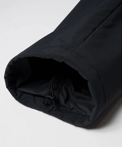 表地、中わた、裏地全てが伸縮性を発揮し、身体の動きに追従することで快適な着用感を追求。