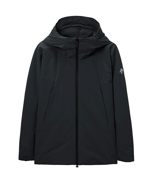 中わたには、太陽光を効率的に熱へ変換する機能を持つ「ヒートナビ中綿」を採用。光を吸収して熱エネルギーに変換するため、動いていない時でも暖かさを感じられるのが特長。さらに高い保温性能に加え、フロントジッパー部分にはデサント独自の「デュアルベンチレーションシステム」を搭載。2列のジッパーと、その間に配置されたメッシュ生地により外気を取り込み、着用シーンに応じて衣服内を換気することが可能。また、フードはコンパクトに収納できるだけでなく、雨などの悪天候下での着用も考慮し、水たまりを防ぐ「パラフードシステム」を採用。