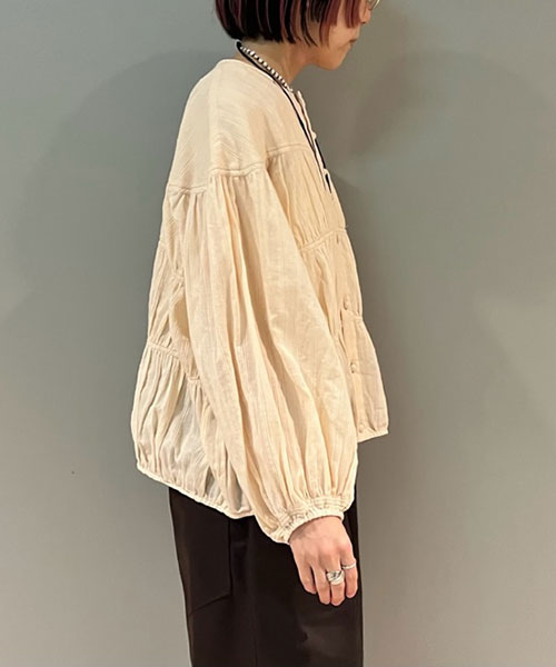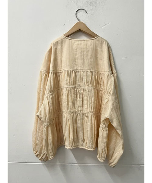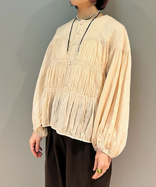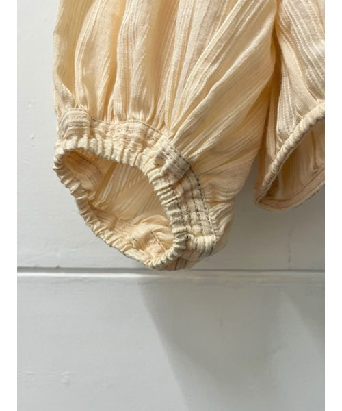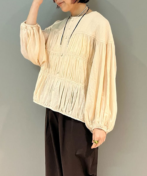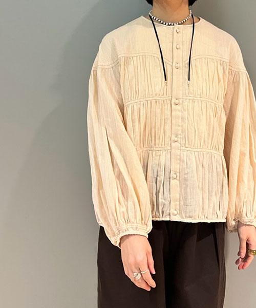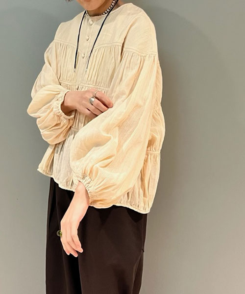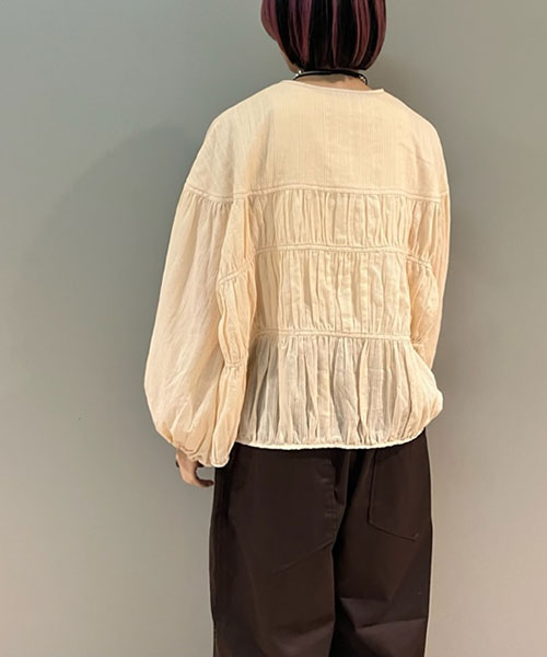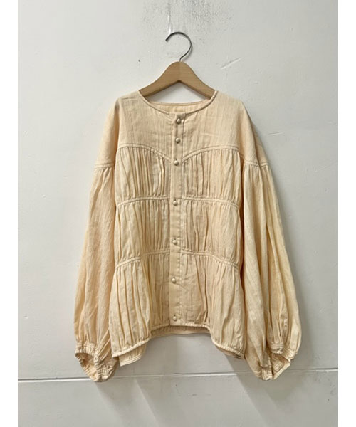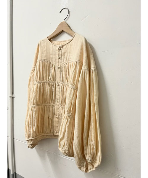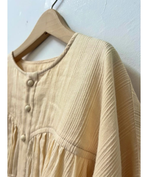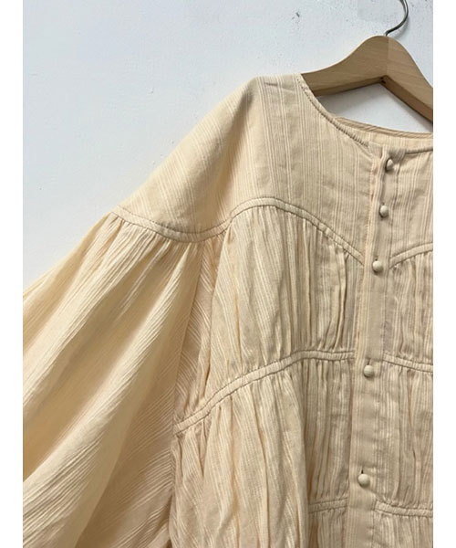 ぐるっと入ったギャザー、くるみ釦などこだわりの詰まったデザイン。
