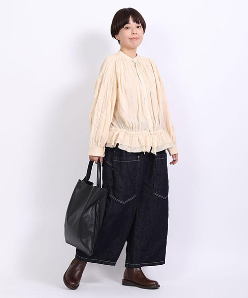 ウエスト部分は調整可能なドローストリング仕様になっており、絞ってシルエットを変えて楽しめます。