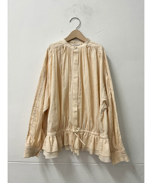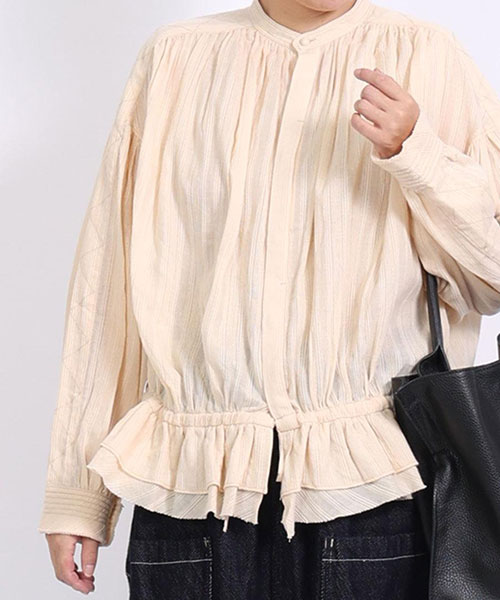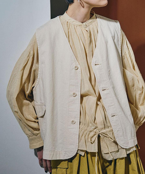 さりげない縦ストライプの織り柄があり、シンプルながらも表情豊かな仕上がりになっています。