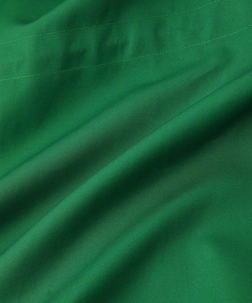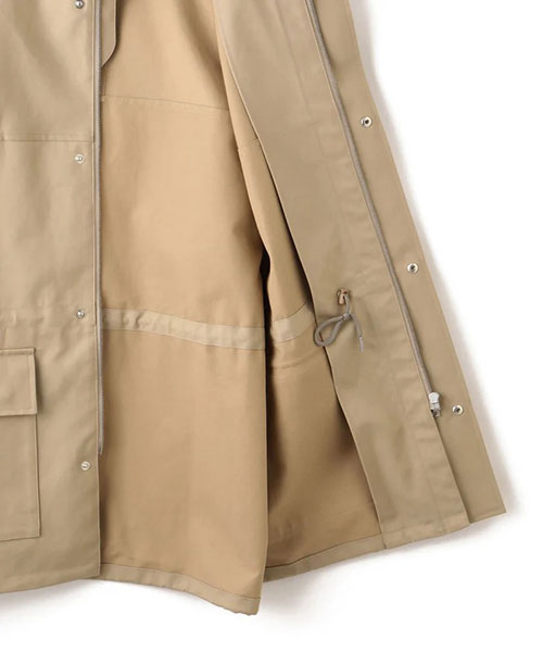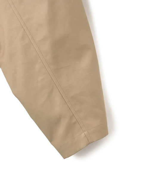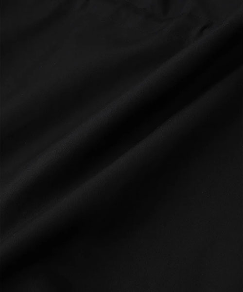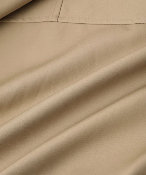 超高密度に織り上げた薄手で張りのあるコットンギャバジンを両面にボンディングし、表面に微起毛加工を施した、贅沢な素材。