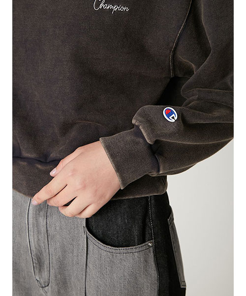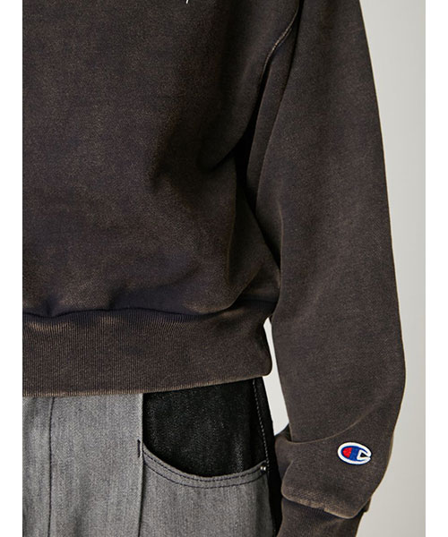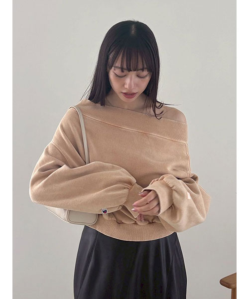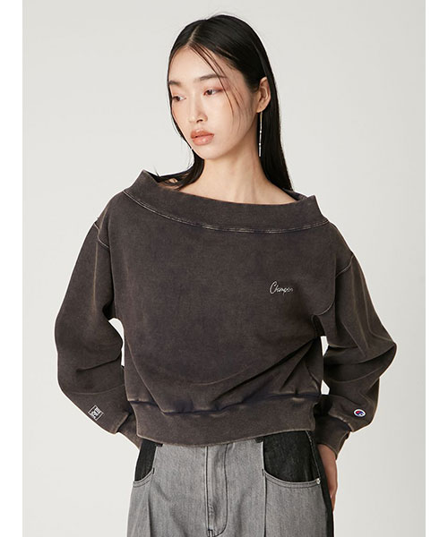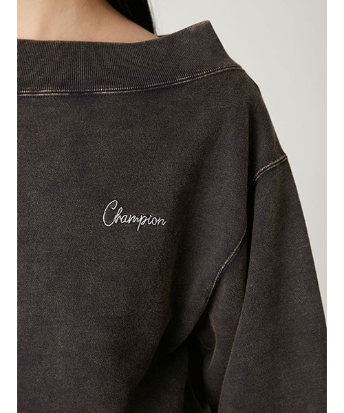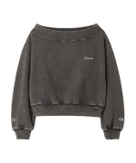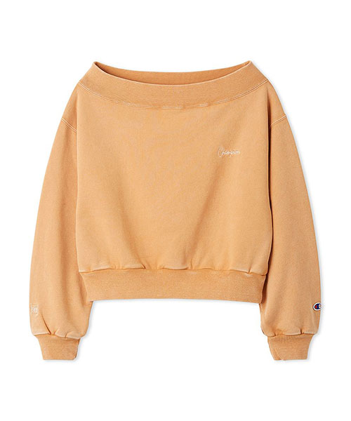 チャンピオンのアイコンとも言えるスウェットを、女性らしいオフショルダーにリデザインしました。