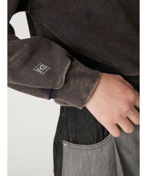 裾には太いリブをあしらい、様々なボトムスに合わせやすい丈感に。
