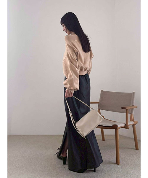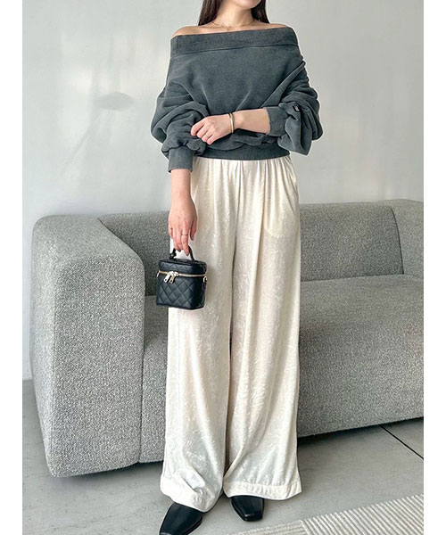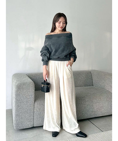 オフショルダーとしてもワンショルダーとしてもアレンジ可能で、肩にのせてボートネック風にも楽しめます。