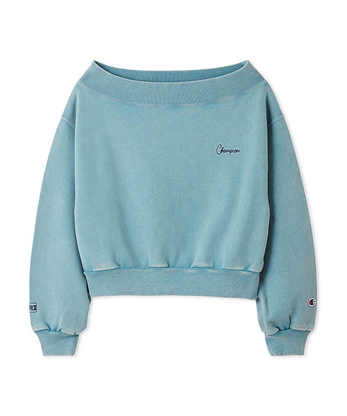 チャンピオンのアイコンとも言えるスウェットを、女性らしいオフショルダーにリデザインしました。