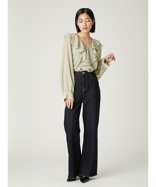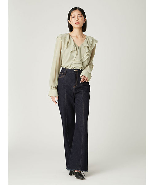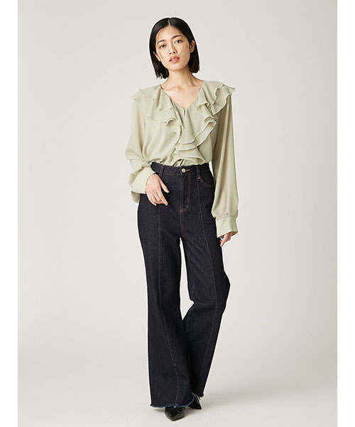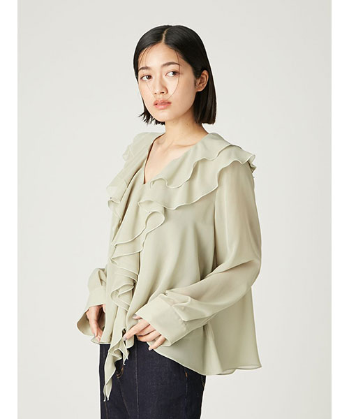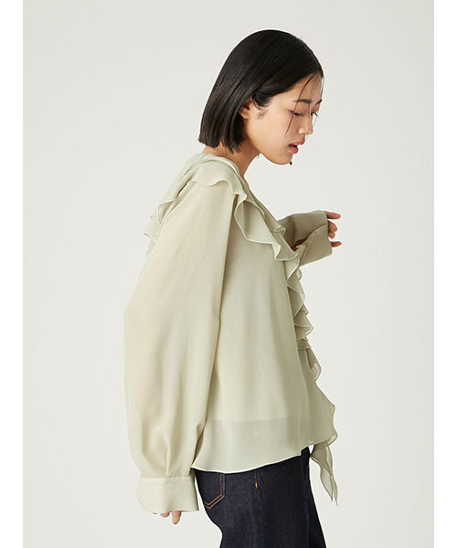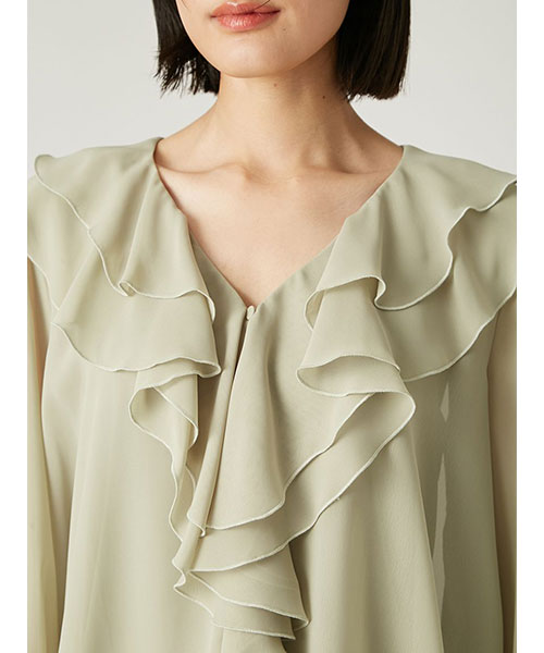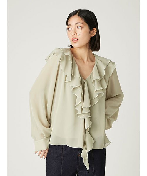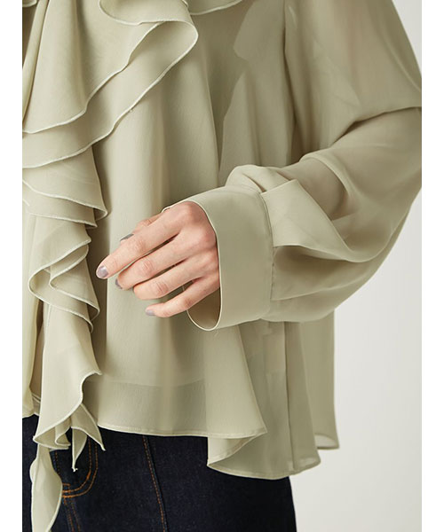 繊細な透け感と軽やかさが魅力の、シフォンジョーゼットを使用したブラウス。