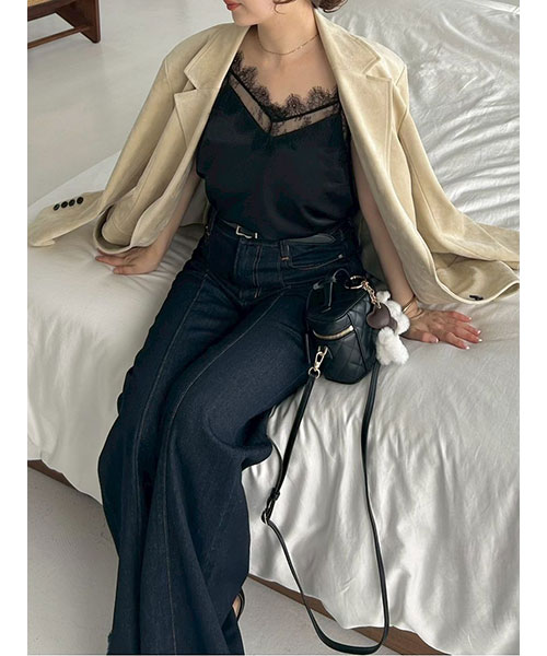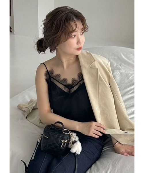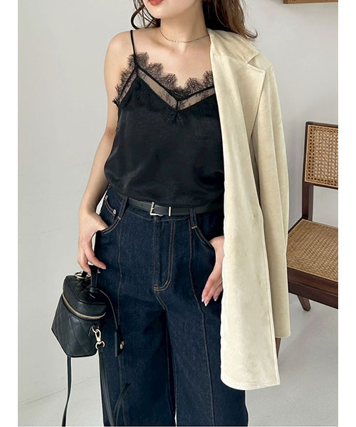 レーストリムサテンスリップキャミソール