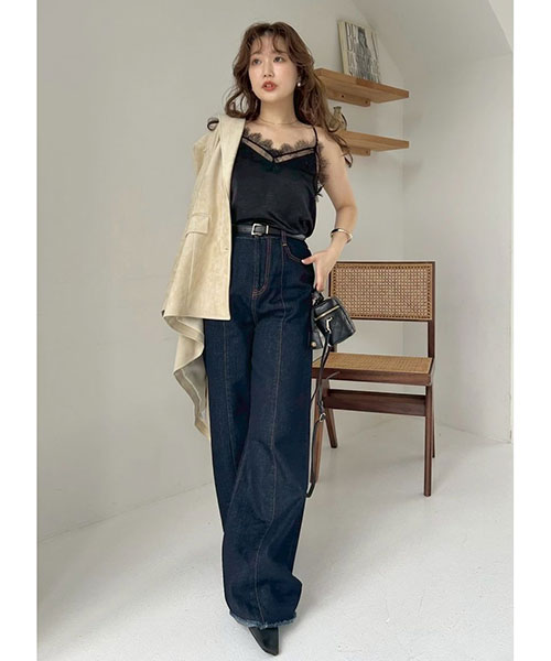 一枚でも着用できるサイズ感ですが、インナーをレイヤードして頂いてもコーディネートが華やかになるように、レースを重ね付けしました。