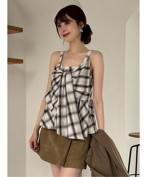 大胆なボリュームのリボンディテールが目を惹くキャミソール型トップスで、一枚でもレイヤードでも活躍。