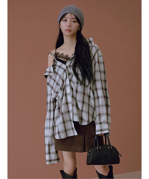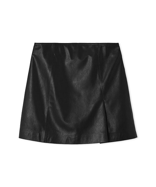 【今年押さえておきたいミニスカート。レザー調素材のアシメデザインなら、トレンド感もさらにアップ】