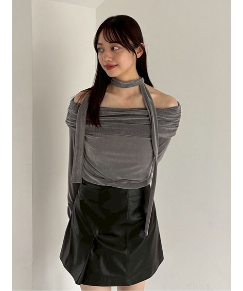 オンラインショップ → SHOP LIST → FRAY I.D → レザーライクアシメタックミニスカート