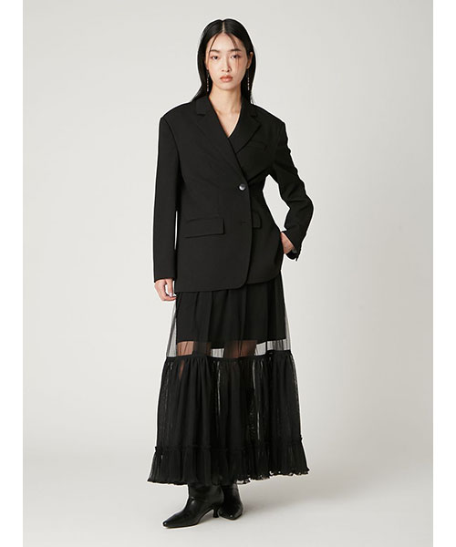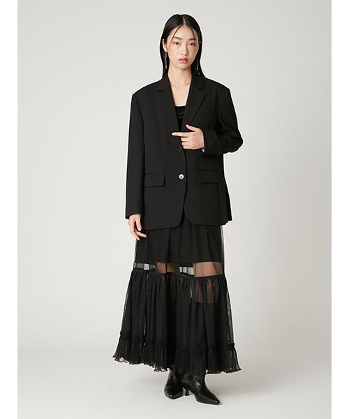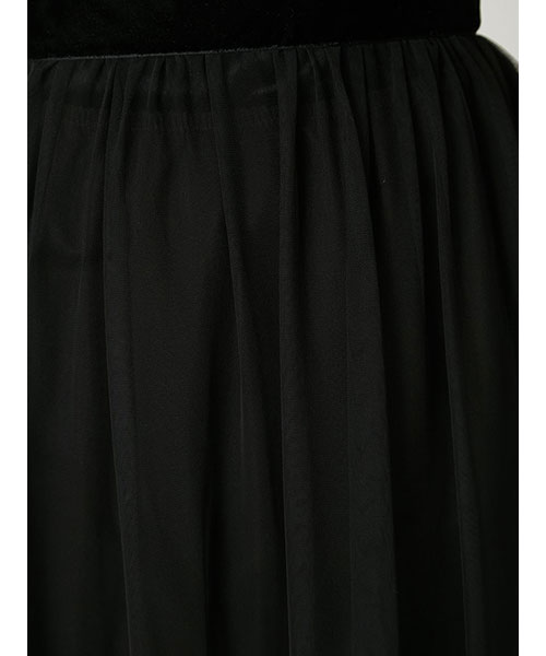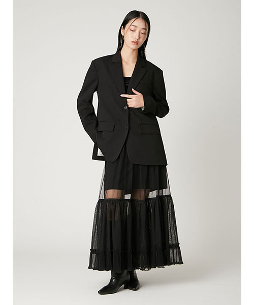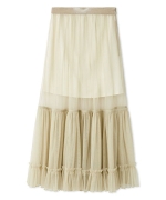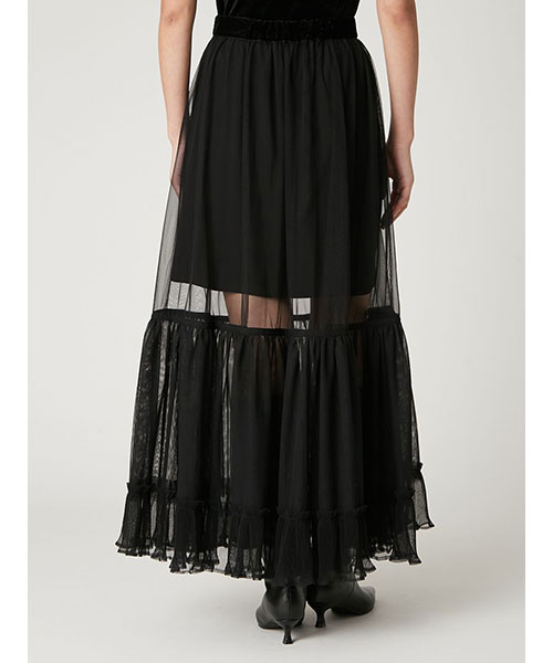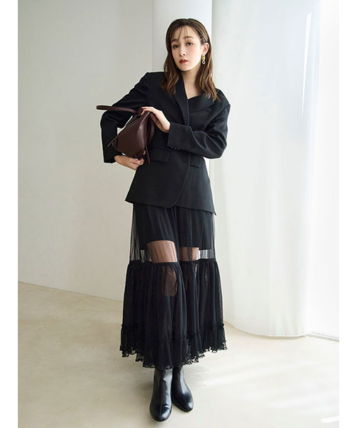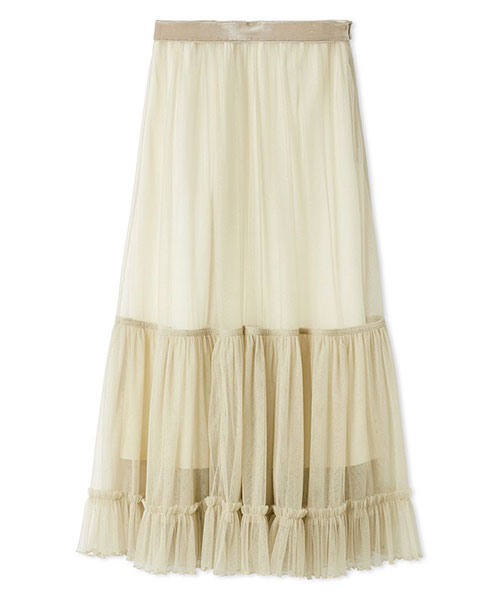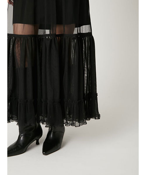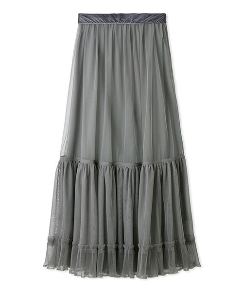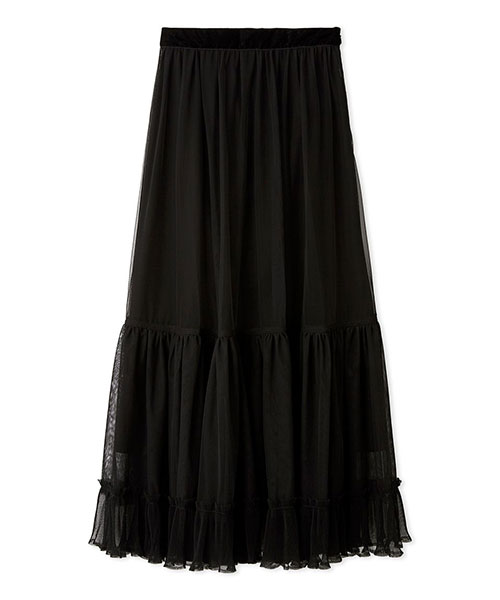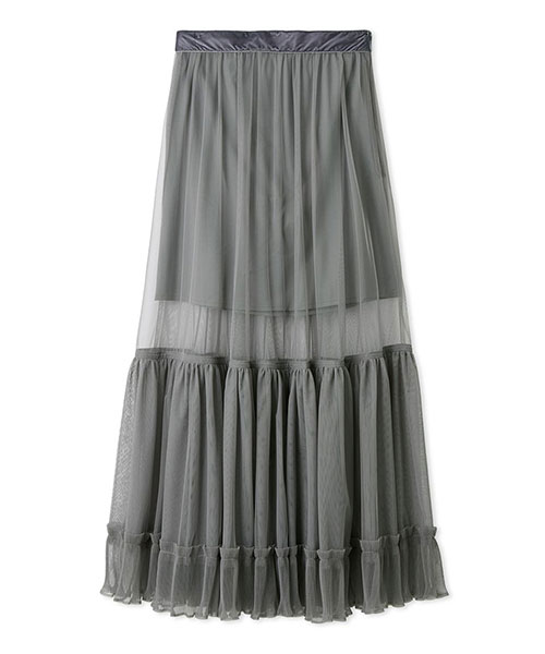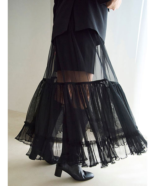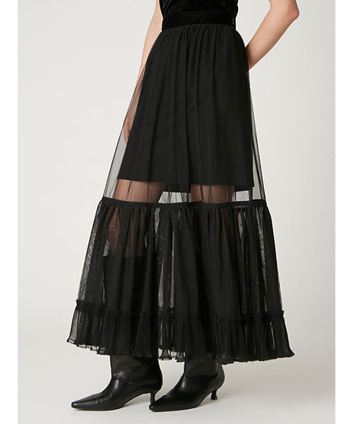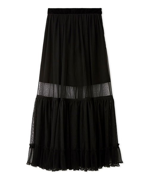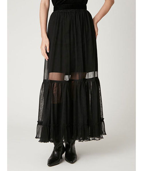 マキシ丈のチュールスカートは、繊細な透け感がセンシュアル。