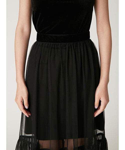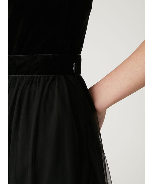 【ドラマティックなチュールスカートは、洒落た肌見せも楽しめる2WAY】