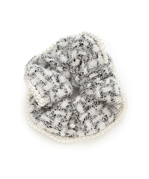 ヘムラインに沿ってパールビジューをぐるりと贅沢にあしらったスペシャルなシュシュ。