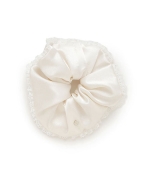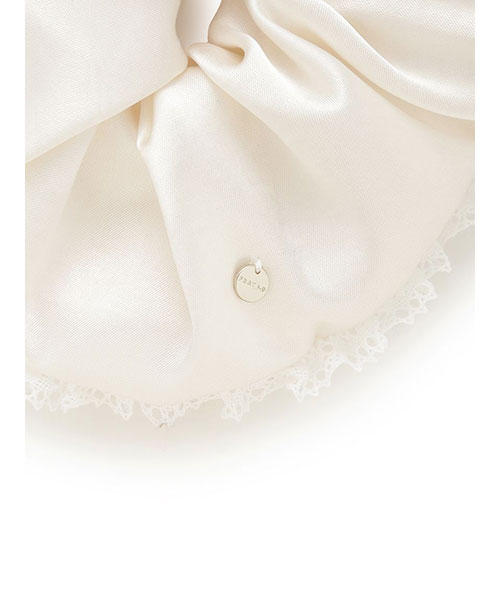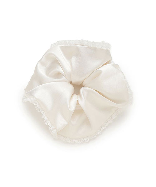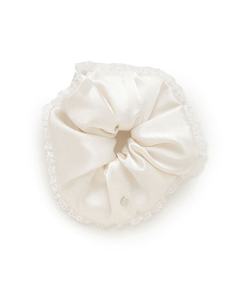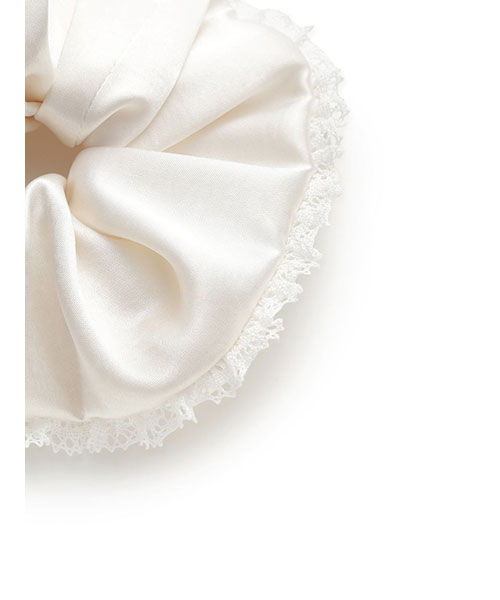 グロッシーな光沢感を放つサテンシュシュのヘムラインに、軽やかなレースをあしらいました。