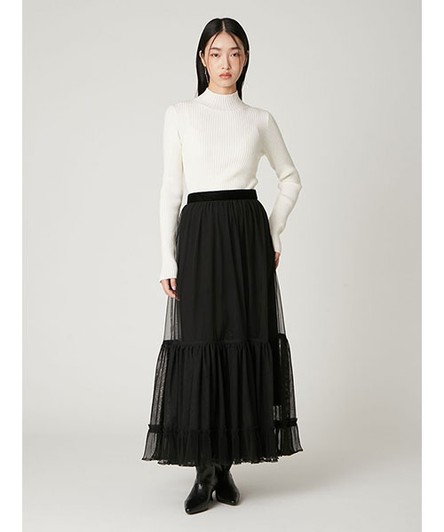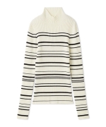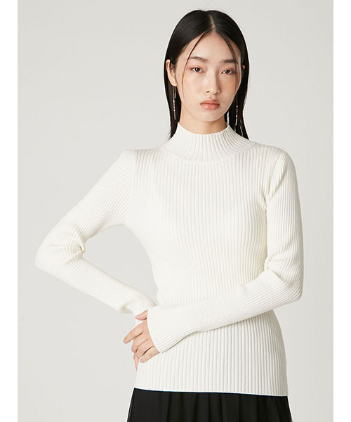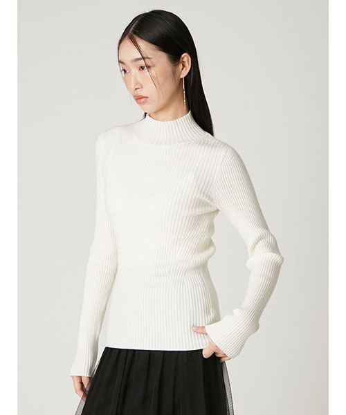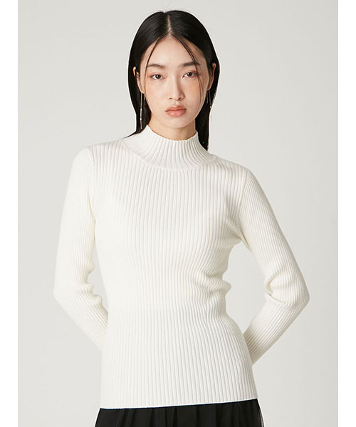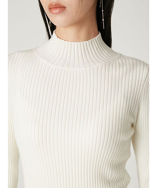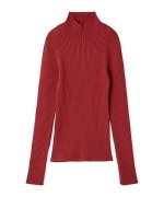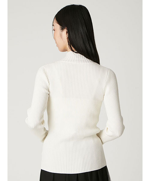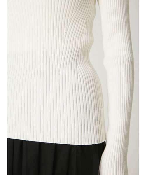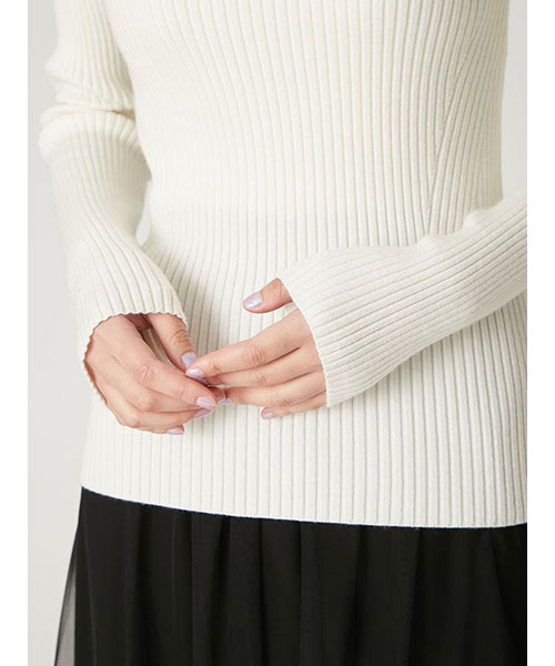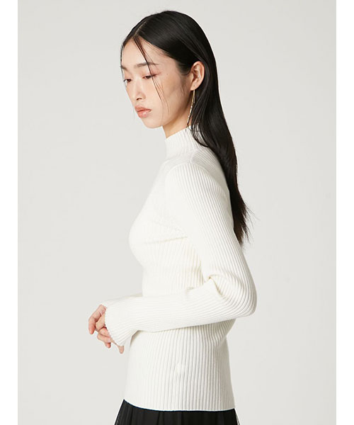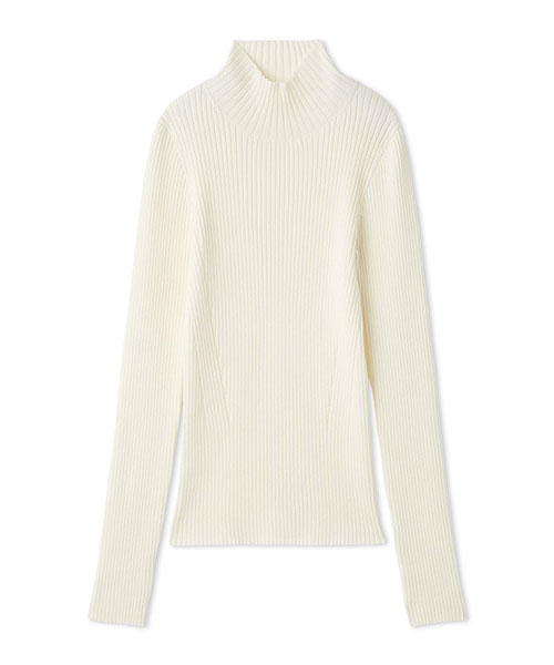 丁寧に編み上げたワイドリブのニットプルオーバー。メリノウールにシルクをブレンドした糸を使用し、しなやかでモチっとした上品な風合いに。ストレッチ糸も織り込んでいるので、身体に心地よくフィットして美しいシルエットをキープします。さらに前身頃に入れた寄せ柄がボディラインをすっきり演出して、スタイルアップをアシスト。ネックラインはレイヤードがしやすいハイネックに。切り替えを入れず、身頃から編み続けることで着心地よく仕上げています。色展開は4色。着回しがしやすいIVRとGRY、トレンドカラーのRED、オリジナルのパネルボーダーがキャッチーなBORDERをご用意しました。