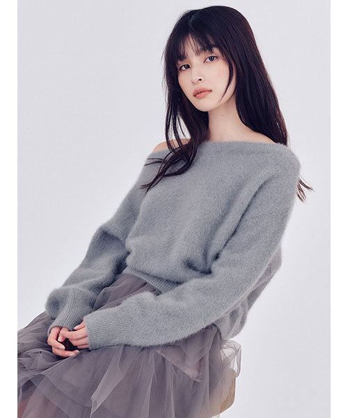 オフショルニットプルオーバーを、フォックスカシミヤ混で高級感たっぷりにお作りしました。