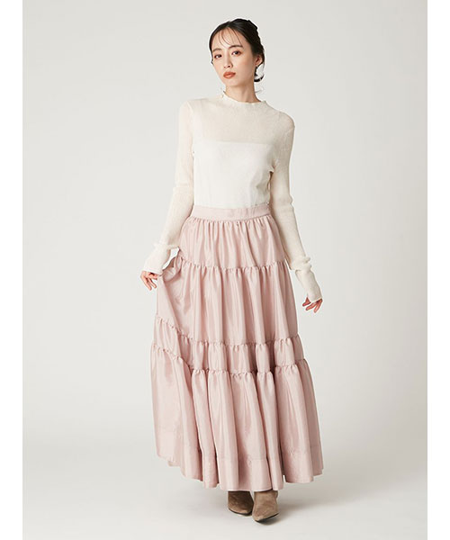 ベーシックなハイネックニットプルーオーバーは、柔らかなシアー感と程よい光沢が差を付けるポイント。