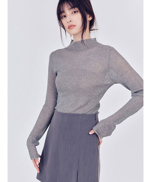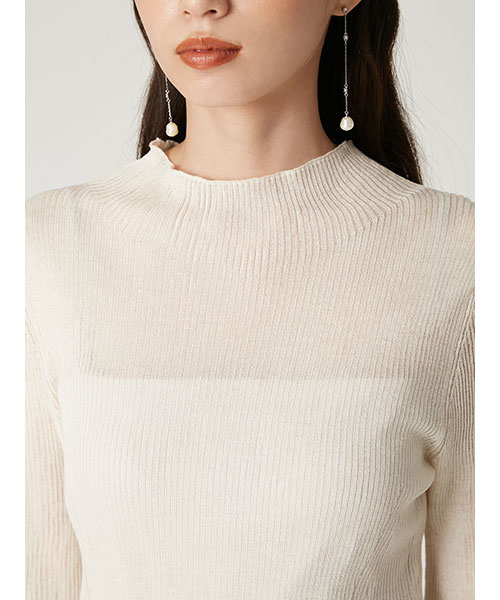シアーリブニットハイネックプルオーバー