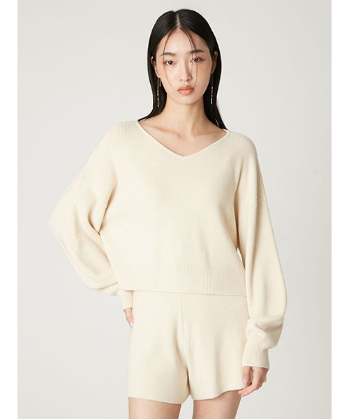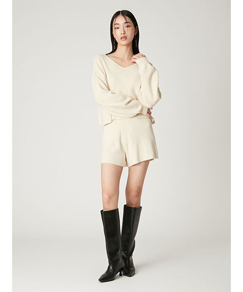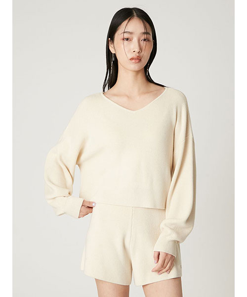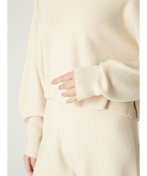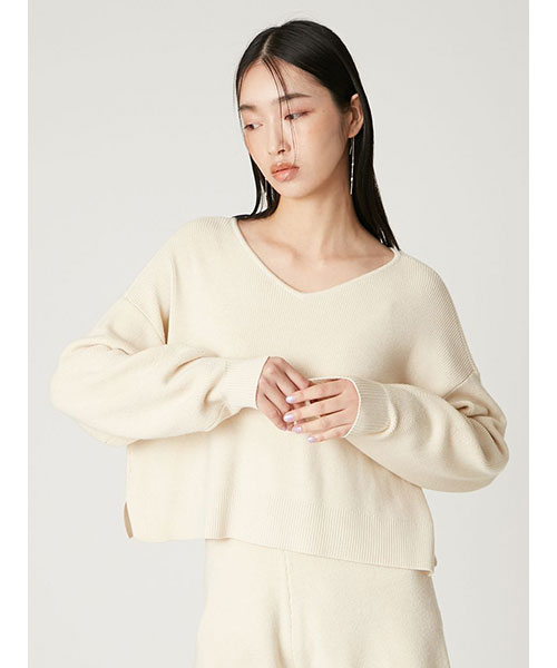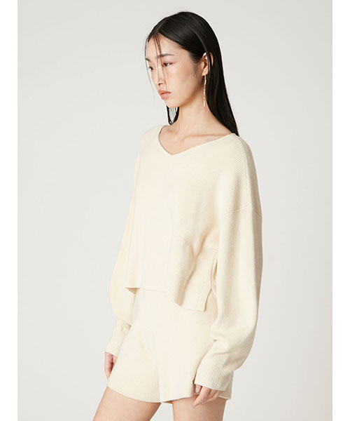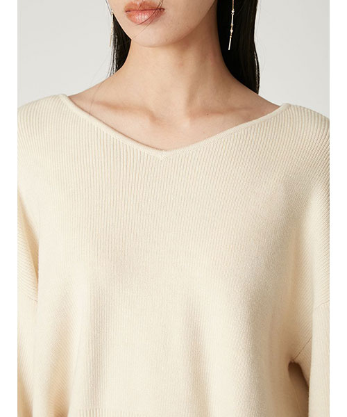 ベーシックに使えるニットプルオーバーは、ネックラインの表情を変えられる前後2WAY。
