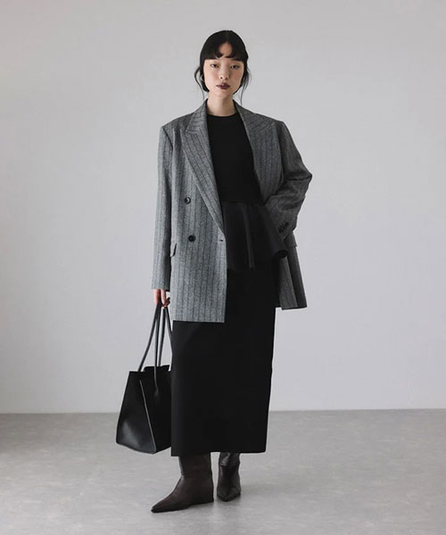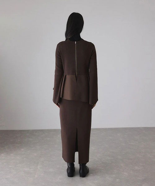 また、ペプラムの分量やフレアの入り方にもこだわり、シルエットを作り上げた1着。