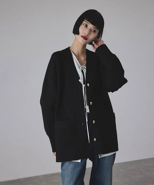 ボタンを留めてVネックプルオーバーとしても着用が可能。