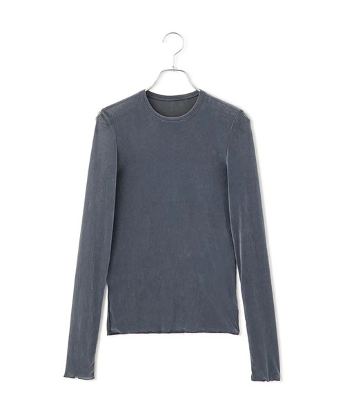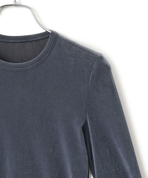 繊細なストレッチチュールに全面フロッキープリントを施した生地を使用した、シアー感のあるベロア調のカットソー。