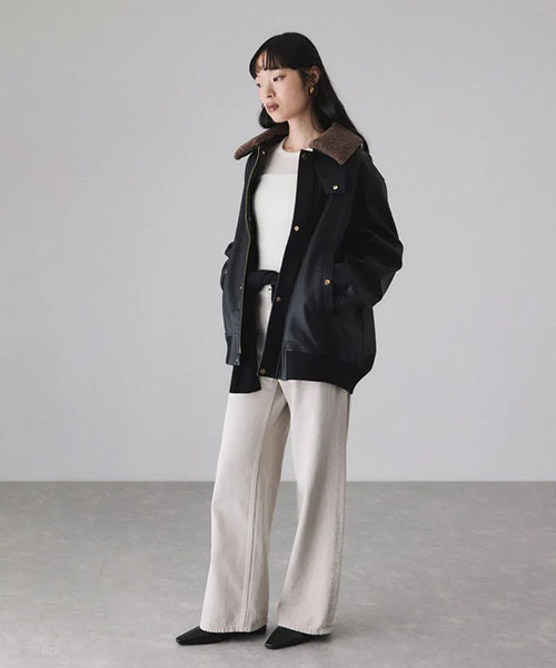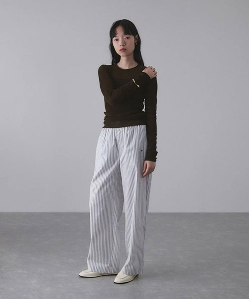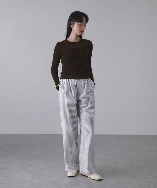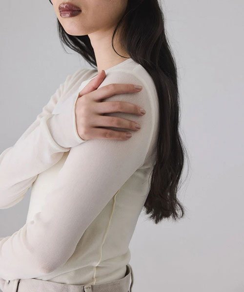 程よいフィット感があり、羽織りのインナーとしてもすっきり着られるサイジングも嬉しいポイント。
