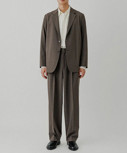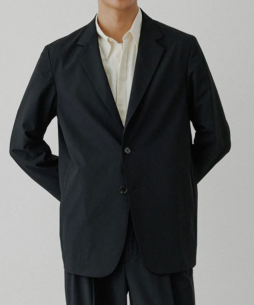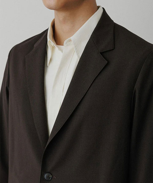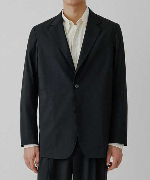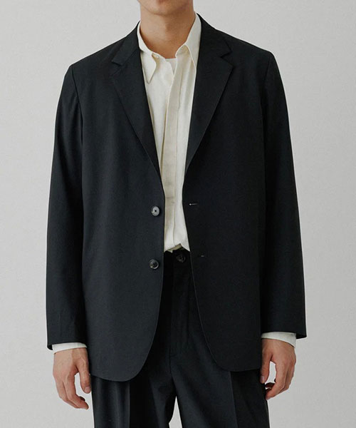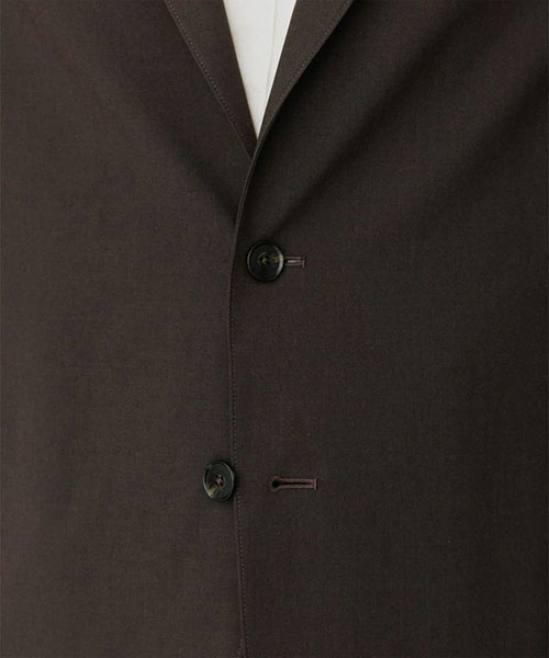 ・2つボタン、低めゴージ、ワイドラペルのクラシック要素
